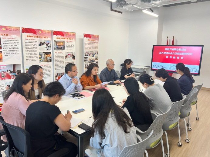 6月27日上午,继教产业联合党总支在长宁校区产教融合大楼1105会议室召开深入贯彻中央八项规定精神学习教育警示教育会,党总支委员、领导班子成员、党支部书记、党支部委员以及关键岗位干部参加会议。